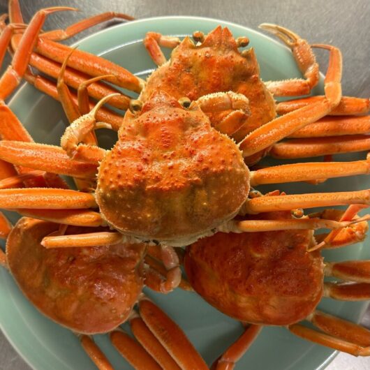 え〜っと、、、1番上に乗ってるのが“こっぺがに”、下の三杯のうち↑が“香箱がに”、←が“セコガニ”、→のんが“ズワイガニのメス”、、、、嘘ウソ、冗談。みんな一緒、ズワイガニのメス。地方によって呼び方が違うだけ。ご存知、オレンジ色の内子が何よりのご馳走、およろしかったらご予約を。呼び方はどれでも対応いたしますので。「コッペ一杯とセコ一つ」とかね。😆🦀🤪🦀😋🦀