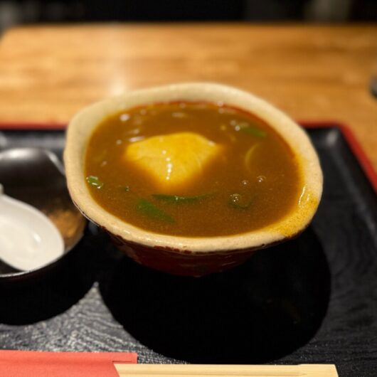 「カレーうろん」。「居酒屋えいじ」のカレーうどん「おばけ」。先日門上さんが紹介してはったのでちょっと食べたなって。餅、海老天、粟麩が湯葉に包んでカレーうどんにのっかってる。そしてこちらの大将、南極観測隊で調理しておられた方らしい。ヘェ〜😳 カレーうどん×餅だけでもかなりそそられるのに経歴をお聞きするとさらに食べたなりました。久しぶりのカレーうどん、お出汁が効いてて程よい辛さ、外は北風、この季節にピッタリ。あと別バージョン、「オバQ」もあるそうなので次回はそちらを。周りの方見てるとこの名物以外も、そしてセットもんも頼んでられる。次回、迷うやん。食べられる量は決まってるので優柔不断な食いしん坊はとっても困る😅ちゅう話。
