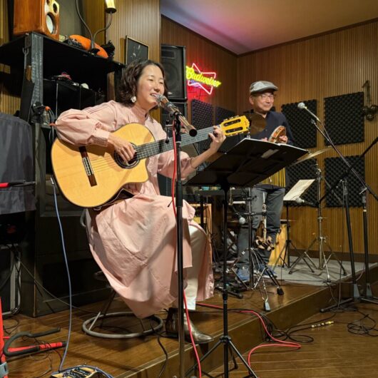 “Karen Tokita bossanova Live with Mac Ueda” 珍しく平日の夜。ミニマムな構成、弾き語り+パーカッション、しっとり落ち着いた素敵なライブでした。女性アーティストのボサノヴァ弾き語りはええなぁ、サポートのパーカッション、上田くんも目立たず隠れず、Karenさんのボーカルを引き立て何ともしっとり。外は寒い京都のやけど、静かなボサノヴァは暖かく大人な夜でした。久しぶりにギター弾きたなりましたやん。すぐ感化されんにゃから。。。🎵