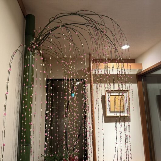 クリスマスが終わり、早速新年を迎える準備、エントランスには華やかな餅花を。