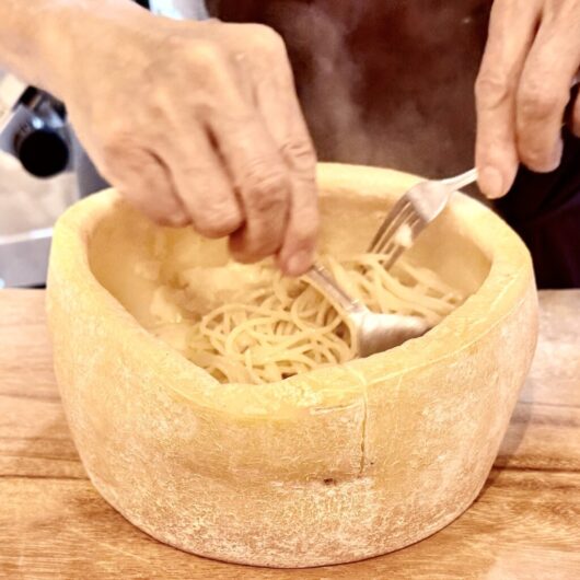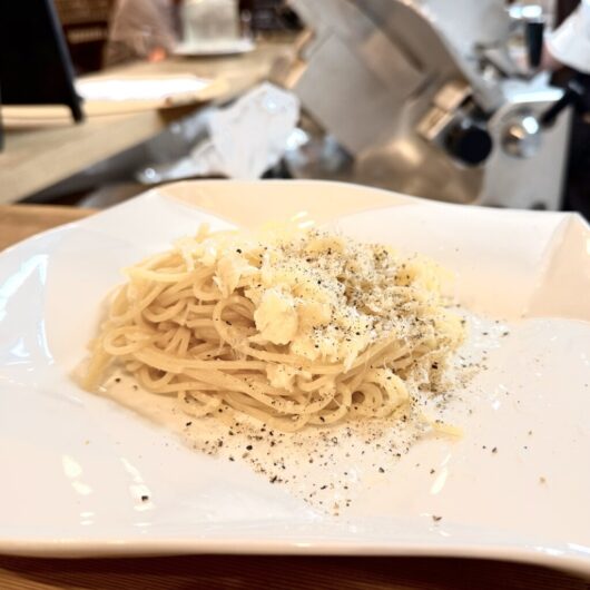 ワインも嗜まず、チーズのわかってへんぼくなんかにはちょっともったいないような気もするけど。目の前でシェフがチーズの釜の中で茹でたパスタと何とかチーズを和え、さらにどっちゃらチーズを絡め、再度何とかチーズとコショウを上からふんだんに振る。この上なく濃厚で美味かった。食いしん坊には危険⚠️なお料理。HANAMITSUさんにて。町家改装のフルオープンキッチン。お若いシェフの力強いお料理を作られるのを眺めるのもいいけど、こちらのように経験豊かなシェフが作られるのは驚きより安定・安心、いい意味での緊張感もなくただただお料理に舌鼓でした。きっとまだイタリアンが珍しかった頃から勉強されてるんやろなぁ。また燻し銀のお料理、味わわせて下さいませ。