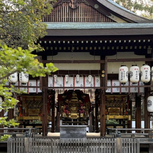 上御霊神社。氏神さま。ぼくらは「ごりょうさん」という。5月はお祭り、お1日に神幸祭、18日に還幸祭。還幸祭には神輿が氏子地域を練る。その神様のお乗りになる神輿、ごりょうさんの拝殿に鎮座、やはり立派。歴史は重く、続いていく。